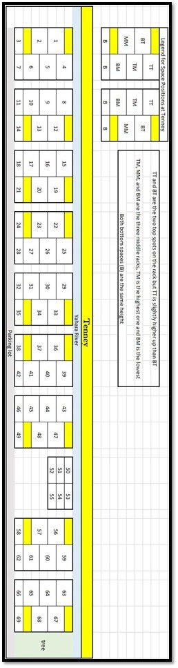 8.      Blank entries/empty spaces. If a line on your audit sheet is left blank, then it has not been assigned and that space on the rack should be empty, so document if anything is in that space and take a picture if you can.  If there is a permit number assigned on your sheet but the space on the rack is empty, then just make a quick note that the space was empty, no need for pictures.